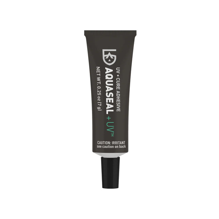 Aquaseal UV is a quick-curing, clear-drying adhesive that bonds directly to neoprene, nylon, and GORE-TEX® fabrics. It dries instantly when exposed to sunlight or UV light, ideal for outdoor gear repair and fly fishing. Waterproof, flexible and abrasion-resistant.
